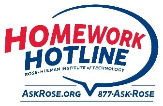 “Ask Rose,” Rose-Hulman Institute of Technology’s Homework Hotline is a free service with student-tutors available Sundays – Thursdays, 8:00 p.m. – 10:00 p.m.